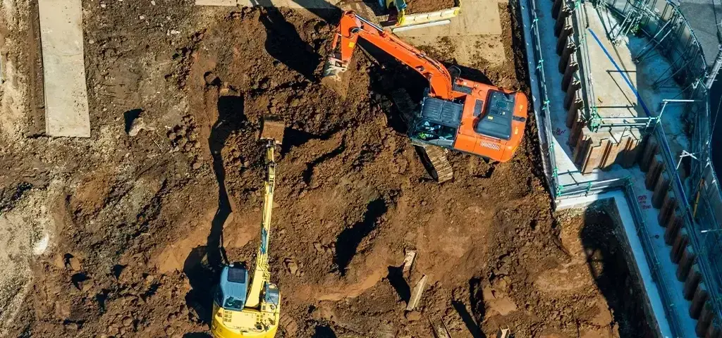 建物の土台をつくる基礎工事。建物全体の仕上がりや安全性を左右する、非常に重要な工事です。主に杭基礎と直接基礎の2種類があり、地盤の状態によって使い分けられます。
