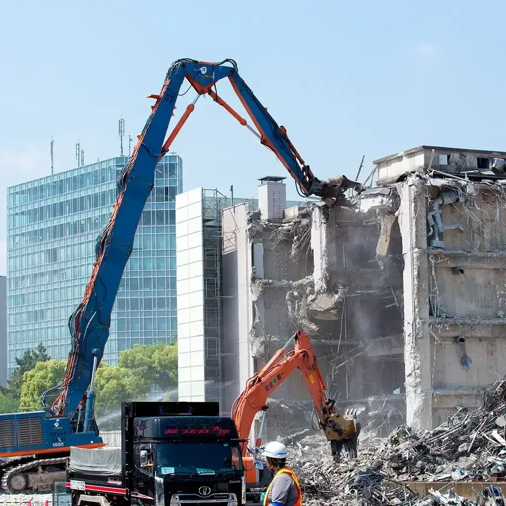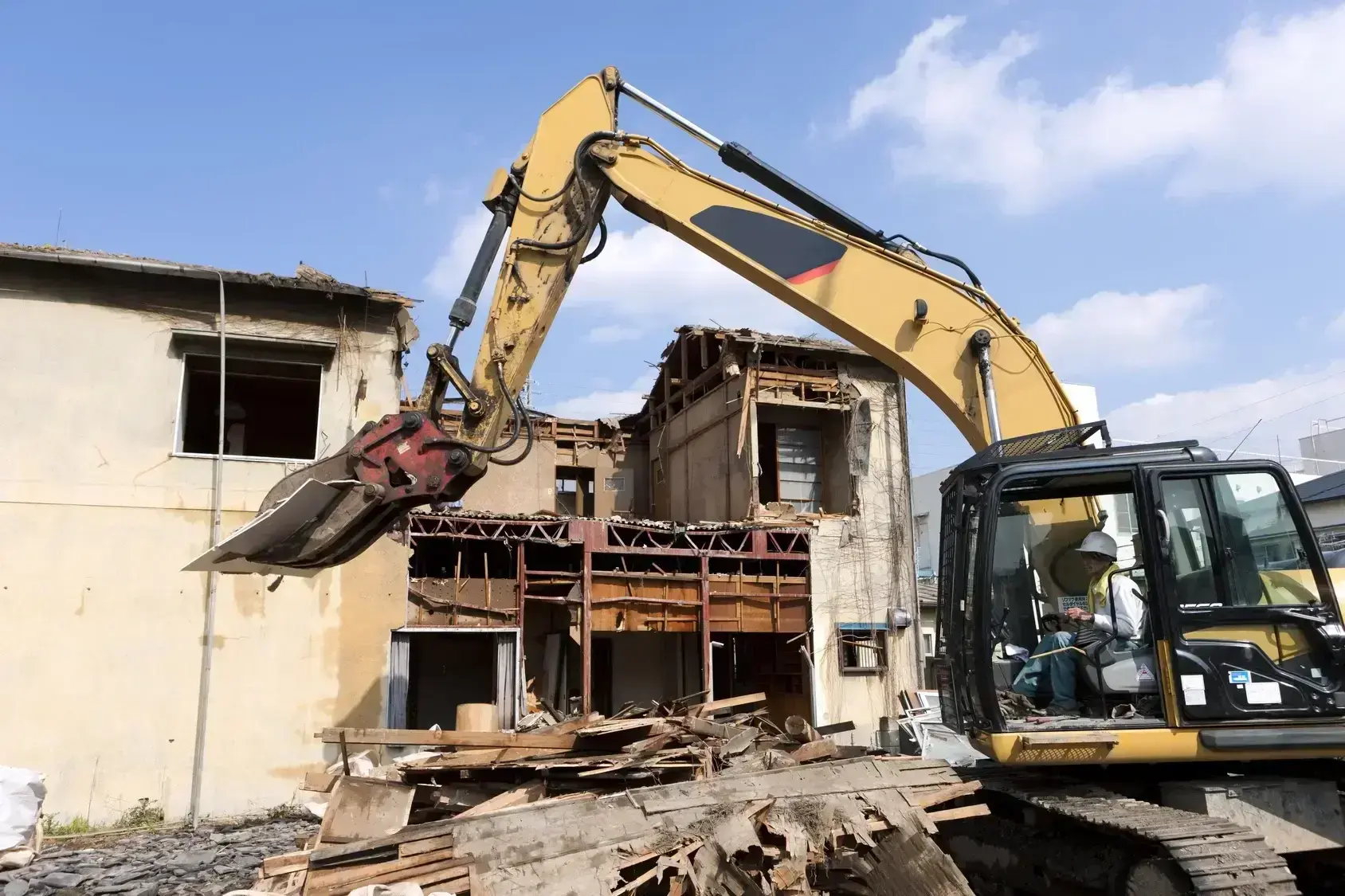 住宅や店舗などの解体工事もお任せください。2階までの木造・SR造・SRC造であれば対応可能です。近隣へも配慮しながら、安全・確実・スピーディーな工事をお約束いたします。