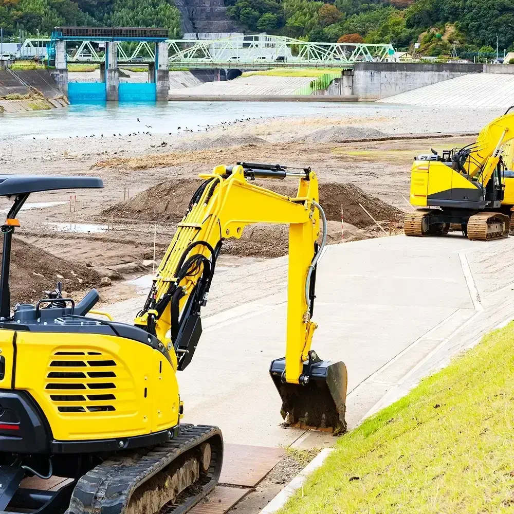 河川の氾濫を防止するために堤防強化などをする工事です。天候に左右される工事であり、高度な技術や知識が必要。さらに、環境保護にも考慮して作業を進めなければなりません。